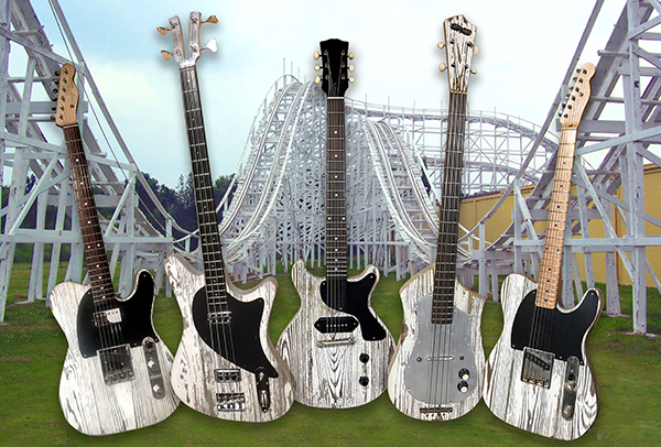 Joyland was an amusment park in Wichita, KS that was open from 1949-2006. In January of 2016, after the wooden roller coaster was brought to the ground, permission was granted to procure a small amount of the roller coaster's lumber in order to build a short run of electric instruments aptly titled Joyland Rollercasters. The first guitar built was modeled after a 1950's Fender Esquire and resides at the Wichita-Sedgwick County Historical Museum. There are also a few regularly being played out by their owners allowing all those passengers' screams trapped in the grain to be released! Maybe you will be lucky enough to hear one out in the wild!